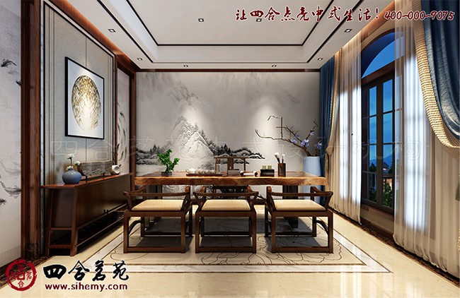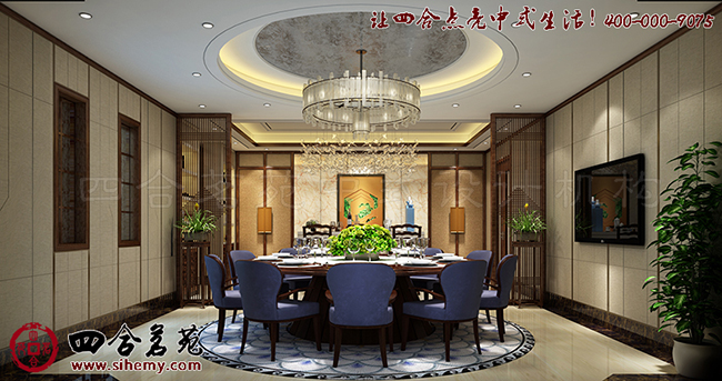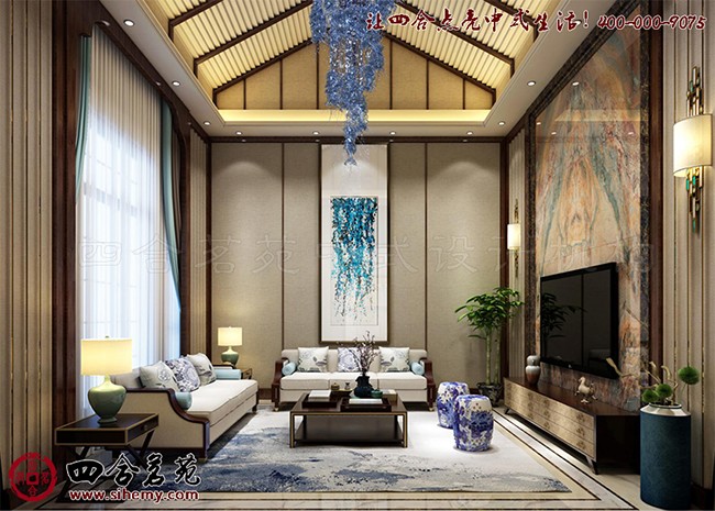 新中式别墅设计营造具有东方神韵的空间氛围,不仅仅是单一的中式符号,更是通过中式风格特征,表达对清雅含蓄、端庄风华的东方精神境界的追求。