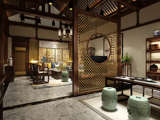 详情介绍:本案中式别墅设计在原有院落基础上进行一定改变,植入中国传统的庭院形式作为设计理念。在平面规划上,把“亭台轩榭”的概念写入其中,在生活功能性得到满足下对环境美观性做出恰如其分的补充。透过中式意境的描摹,将整个别墅空间勾勒得明艳动人、仪态万千。