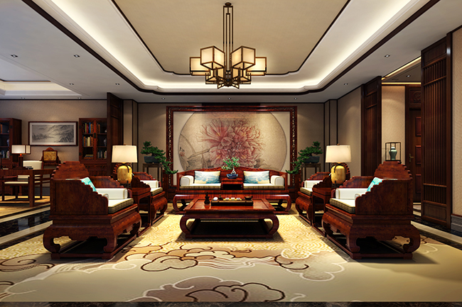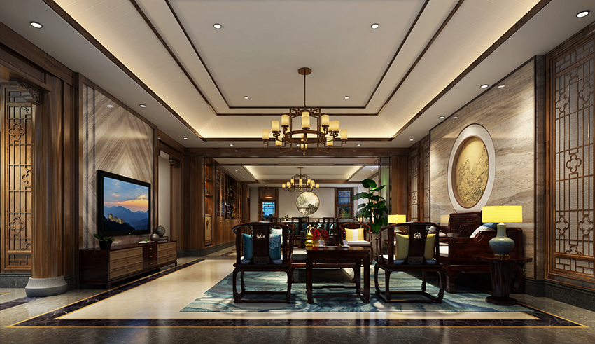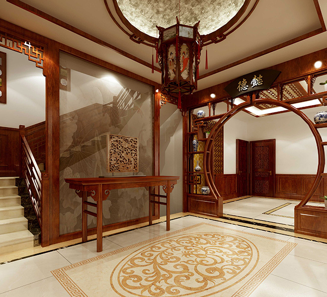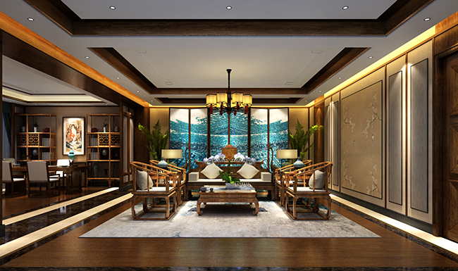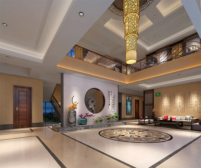 详情介绍:本案中式别墅设计采用现代与传统结合的手法,将实用、古典的中式风格融合在一起,对中式风格进行了别样的演绎。用整体统一的色彩搭配,佐以优雅造型的东方家居,虚实相生,刚柔并济,营造出一种私密又惬意的空间氛围。